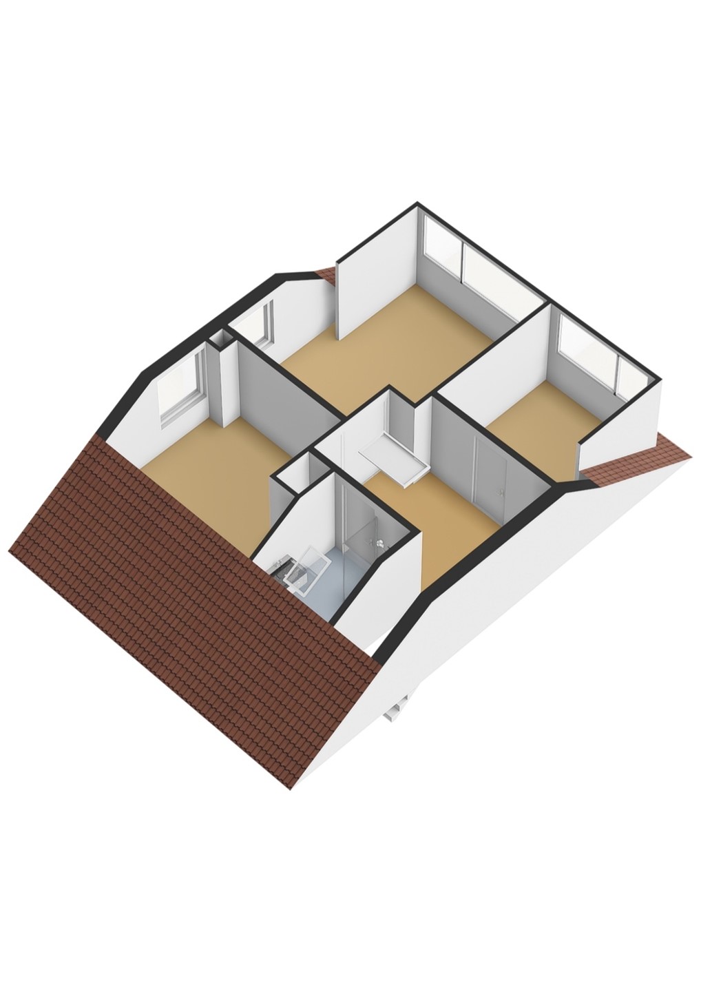 Er zijn drie slaapkamers, waarvan één aan de voorzijde en twee aan de achterzijde zijn gelegen. De twee grootste slaapkamers beschikken over een venster in de zijgevel en zijn beide voorzien van airconditioning. De slaapkamer aan de voorzijde heeft een vaste kast onder de knieschotten.