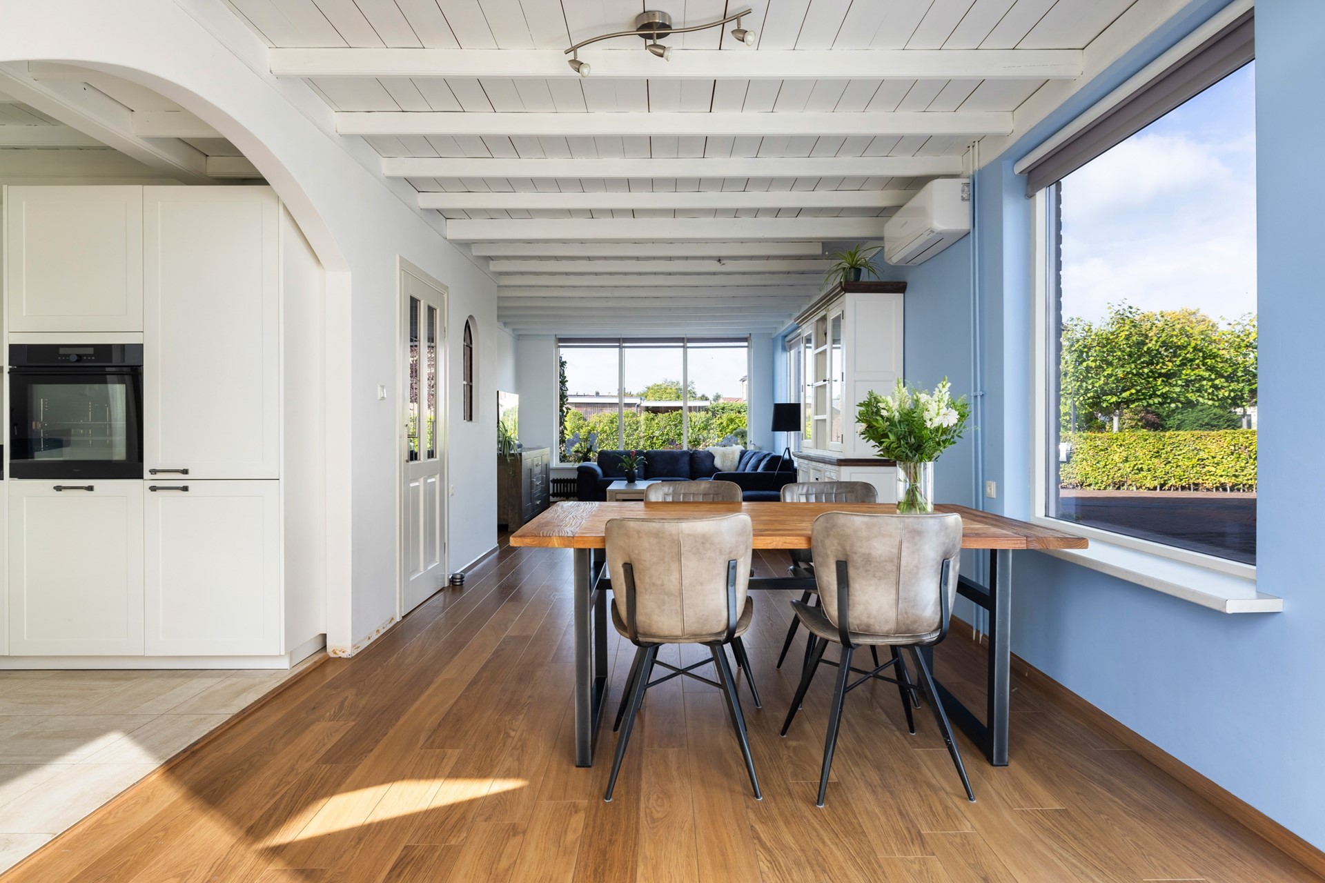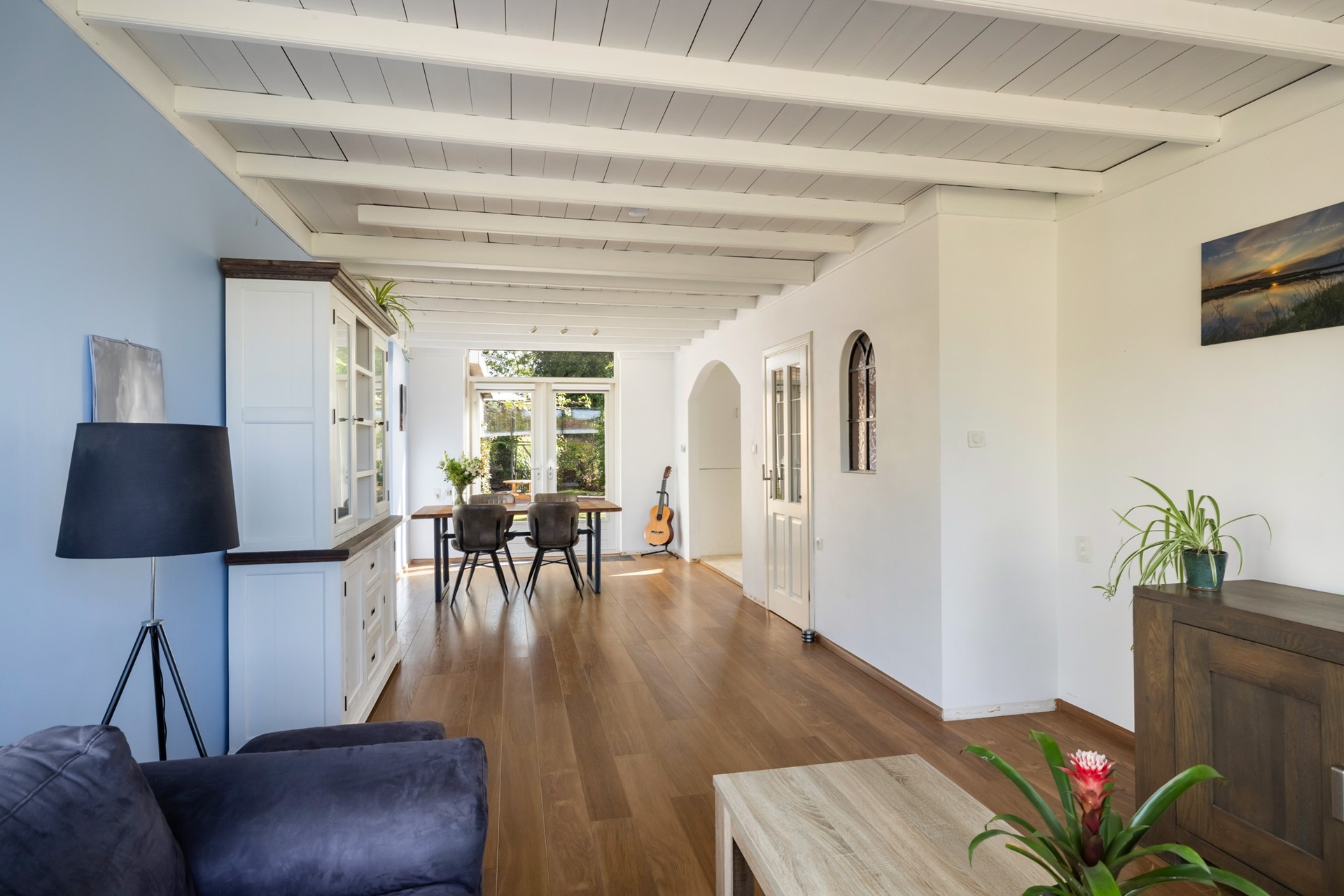 Vanuit de hal betreedt u de woonkamer met aan de voorzijde ruimte voor een zithoek en aan de achterzijde, nabij de open keuken, voldoende plaats voor een royale eethoek. De vensters in de zijgevel zorgen voor een prettige en royale lichtinval. De dubbele tuindeuren verbinden de woonkamer met de achtertuin.