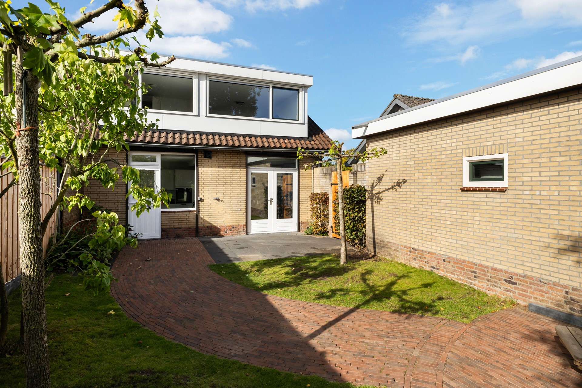 De voortuin is onderhoudsvriendelijk aangelegd en deels voorzien van sierbestrating, siergrind en verhoogde borders met gevarieerde beplanting. De oprit is volledig bestraat en biedt parkeergelegenheid voor meerdere voertuigen.