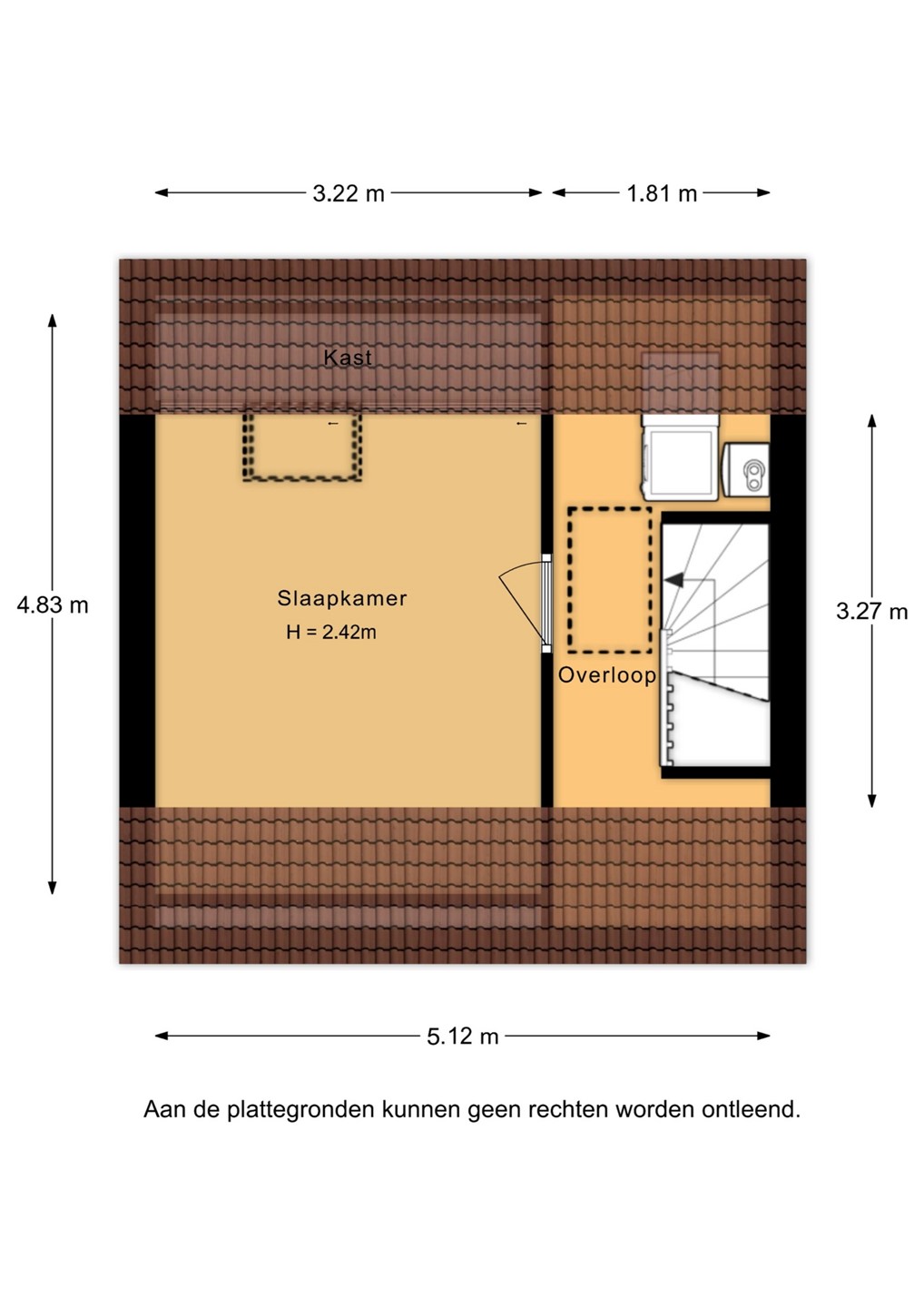 Vanaf de overloop is middels een toegangsluik de vliering bereikbaar.